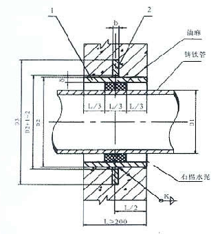 剛性防水套管(B型)(C 型)適用于管道穿墻處不承受管道振動和伸縮變形的構(建)筑物。對于有地震設防要求的地區,如采用剛性防水套管,應在進入池壁或建筑物外墻的管道上就近設置柔性連接。B型和C型適用于球墨鑄鐵鋼管及鑄鐵管。